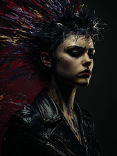 A face emerges from a storm of texture — blues, reds, yellows, and whites swirl around a single eye, steady and searching. Petals blend into skin, brushstrokes into breath. The gaze is quiet but unflinching, framed by chaos yet untouched by it. This is not just a portrait — it’s a pause. The look doesn’t demand; it invites.